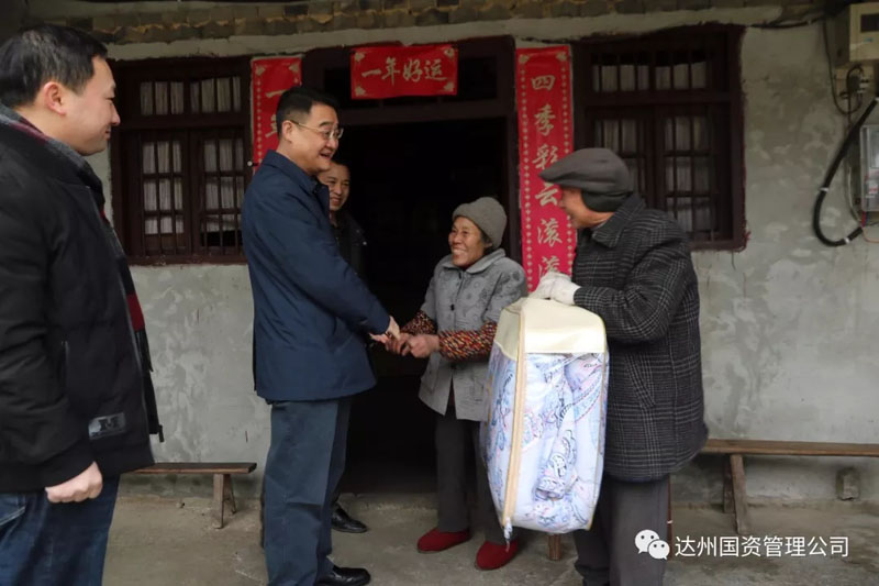 2月2日、3日,達州市國資經(jīng)營公司黨員干部在黨支部書記、總經(jīng)理鄧華和黨支部副書記、副總經(jīng)理謝盛強分別帶領(lǐng)下深入對口幫扶村經(jīng)開區(qū)斌郎鄉(xiāng)何家村開展“十九大精神進院壩,情暖民心共話脫貧”院壩懇談會和“迎新春,送溫暖”慰問活動,現(xiàn)場聽取貧困戶幫扶需求和愿望,共謀2018年幫扶舉措,受到干群熱烈歡迎。