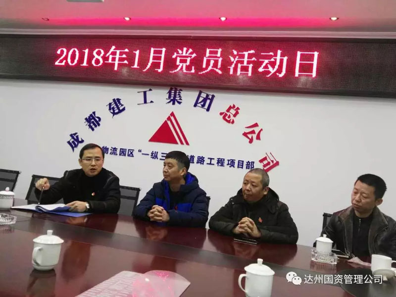 1月10日,2018年第一個(gè)“黨員活動(dòng)日”,達(dá)州市國(guó)有資產(chǎn)經(jīng)營(yíng)管理公司黨支部結(jié)合“黨建工作進(jìn)項(xiàng)目,聯(lián)建聯(lián)動(dòng)促發(fā)展”、“走基層,解難題,辦實(shí)事,惠民生“活動(dòng)開展,聯(lián)合成都建工集團(tuán)秦巴物流園區(qū)項(xiàng)目黨支部聯(lián)動(dòng)開展主題黨日活動(dòng)。活動(dòng)以專題黨課輔導(dǎo)、學(xué)習(xí)研討、現(xiàn)場(chǎng)觀摩秦巴物流園區(qū)青杠梁段揚(yáng)塵治理規(guī)范化管理示范點(diǎn)(全市市政道路揚(yáng)塵治理規(guī)范化管理示范點(diǎn))等方式進(jìn)行。