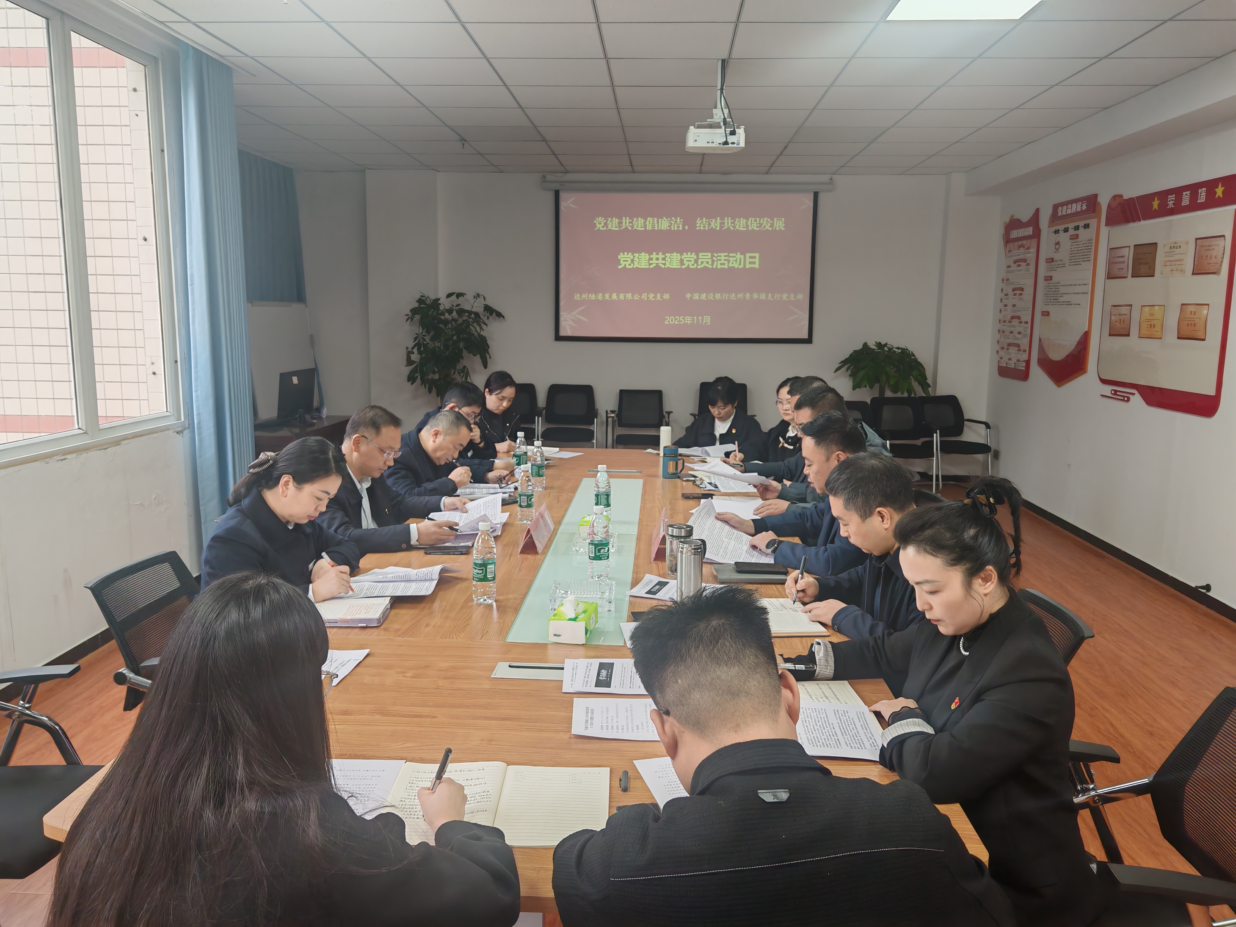 11月12日,達(dá)州陸港公司黨支部與中國建設(shè)銀行達(dá)州青華園支行黨支部聯(lián)合開展了以“黨建共學(xué)倡廉潔,結(jié)對(duì)共建促發(fā)展”為主題的黨建共建聯(lián)合黨日活動(dòng)。